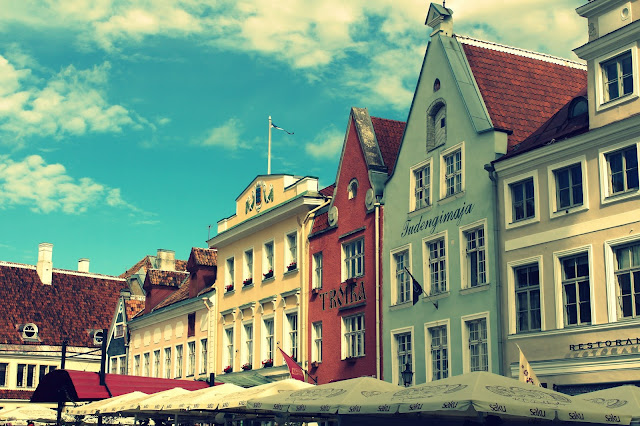 We had a bus to catch at 10:30PM on Friday. Sleeping on the bus is never desirable, but I thought I'd be alright this time because I had my ZzzzQuil. Took two of those babies and knocked right out. I had 2 seats to myself, luckily. I think I slept almost the whole 9 hours there. Maybe I was awake for 1 hour max. It was beautiful. I'm telling you, this never happens to me. So it felt like a small triumph to have achieved that much sleep. We arrived at 7AM to a not so rainy Tallinn (Which was disappointing because I packed for a rainy weekend, due to the weather saying so.) Looks like my rain boots would be staying in the bottom of my backpack, then. We had to walk a little bit to the hostel. Nothing was open at this time, so after we dropped our bags in the luggage room, we had a little trouble finding somewhere to eat for breakfast. We found a Reval Cafe but it wasn't to open for 30 minutes. We decided to wait outside because we were sure any other cafe wouldn't be open yet either. It wasn't as lovely as I remembered it was, but the food was good. I got a Chai Latte and a Ham & Cheese omelette. It literally did nothing for the starvation I was feeling so I ate half of Annie's (poor girl hates eggs but the only other option on the menu was porridge, and we get enough of that on the week days.) I still felt a bottomless pit in my stomach, but figured we would eat again soon. We didn't have anything planned. Tallinn doesn't have big, popular attractions like other European cities. It's just a quaint little place with winding, cobbled roads and beautiful buildings. We spent the day mostly seeking out good food and hanging by the sea. Our group split up and Annie, Madi, McCall & I took off in search of a nice place to view the Baltic Sea. We camped on a wall next to the harbour and honestly, we sat there for maybe 45 minutes, hardly exchanging any words. Just enjoying the sound of waves, the wind and the serenity of life at that very moment. I couldn't help but wish that Tim could have been there with me. As I looked across the sea and knew that in the far distance, Finland was ahead. Even though he isn't there now, it was a funny feeling to think that his homeland was just across the sea. I can't wait to see what the future has in store for our traveling endeavors together!